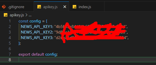 사실 .gitignore 파일에 관해 대충 알고있었지만, News API를 사용해 프로젝트를 진행하던 중, api키를 그대로 깃허브에 올리게되면 다른 누군가가 내 api키를 이용해서 무엇인가??를 할 수 있기때문에 되돌릴 수 없는 일이 일어날 수 있다는 것을 들었던 기억이 나서 이번 기회에 정리해보고자 글을 적는다.